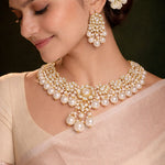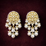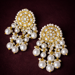 Gold Polki Diamond Look Pearl Drop Chandelier Earrings in 925 Silver