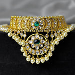Pure Silver Gold Plated Emerald Polki Temple Choker Necklace