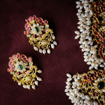 South Indian Ruby Emerald CZ Polki Pearl Drop Earrings in 925 Silver