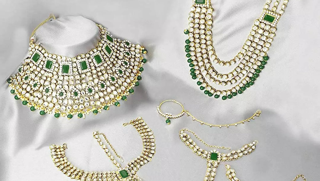 Female Indian jewelry is of various types, like earrings, bracelets, bangles, hair decorations, frontlets, rings, and anklets.