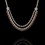 Delicate 2 Line Necklace + Earrings Set with Diamond & Ruby Look