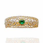 The piece is made is 92.5% silver and CZ Ad. It is finished with gold polish