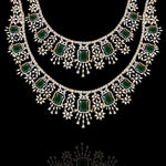 Diamond & Emerald Cascading Necklace + Earrings Set - An Enchanted Forest Elegance