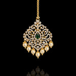 Emerald Center Bridal Mangtikka Design with Cascading Pearls & CZ Diamonds