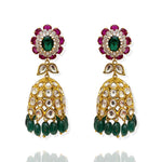 With CZ gemstones, these earrings of polki is an obsession that shines with rich rubies & emeralds.
