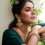 Majestic CZ Kundan Chandbali Earrings with Ruby & Emerald Accents