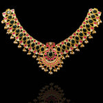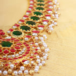 Grand Ruby Emerald Polki Necklace with Pearl Drops in Gold Finish