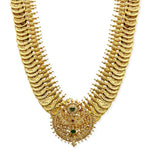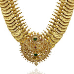 A stunning haram design of Kasu Mala necklace shine with kasus in this exceptional piece of jewelry.