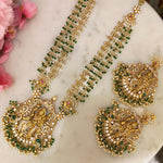 Silver Gold Polished Vishnu Temple Pendant Necklace + Earrings Set