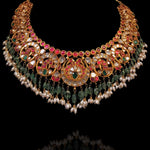 South Indian Polki Look Cuff Earrings + Necklace Peacock Motif