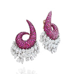 Boasting a unique shape, bright pink, & white stones, these cocktail earrings are sure to attract all eyes.