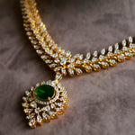 Graceful Emerald Pendant CZ Diamond Look Necklace with Gold Polish
