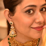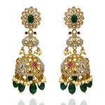 These timeless polki earrings are exquisite & delicate pieces of jewellery that showcase the beauty of uncut diamonds & intricate craftsmanship. These Jhumkas are made with silver & CZ stones and is finished with 18K gold polish.