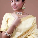 This South Indian Choker is made with silver & CZ stones and is finished with 18K rhodium polish.