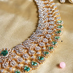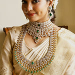 Bridal Diamond Look Necklace with Emerald Drops and Ruby Centerpiece