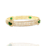 A stunning bangle made of CZ diamonds and emeralds, combining the brilliance of diamonds with the lush green hue of emeralds for a gleaming sophisticated look.