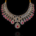 Diamond Ruby Emerald Look Heavy Short Haar Necklace