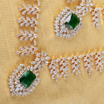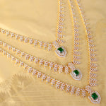 Grand Emerald CZ Diamond Look 3-Layer Bridal Haram in 18K Gold Plated Silver