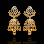 Heritage Kasu Jhumkas with Emerald CZ and Grand Bell Drops