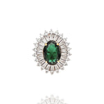The "Jeweled Oasis: The Emerald Elixir" cocktail emerald ring is a stunning piece of jewelry that exudes elegance and allure. This exquisite ring features a captivating emerald gemstone at its center, carefully chosen for its rich, vibrant green hue reminiscent of a lush oasis.