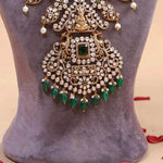 South Indian Temple Necklace with CZ Pearls and Emerald Drops for Brides