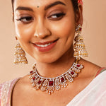 Ruby CZ Diamond Look Short Necklace in Gold Polish - Bridal Jewellery
