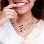 Three-Strand Sparkling CZ Necklace with Emerald Drops