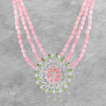 CZ Polki Pendant Adorned with Jade Emerald String Mala Polki Pendant Adorned with Jade Emerald String Mala