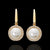Diamond CZ with White Pearl Earrings in 18Kt Yellow Gold Polish