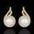White Pearl with Diamond CZ Earrings Tops In 18Kt Gold Polish