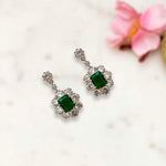 Sparkling CZ diamonds complement a stunning of green emerald stone in this bespoke victorian Earrings.