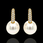 18K Gold Polish Pearl Drop Earrings with Radiant Diamond Look CZ