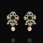 Delicate Pearl Drop Emerald Stud Earrings with 18K Gold Polish