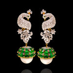Diamond-Studded Peacock Earrings with Emerald Beauties