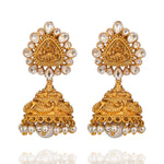 Goddess Lakshmi Nakshi Work Temple Jhumka Earrings with Polki