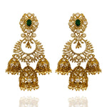 These multiple Jhumkas Cluster Earrings make for extraordinary wedding-day jewels. These Jhumkas are made with silver & CZ stones and is finished with 18K gold polish.