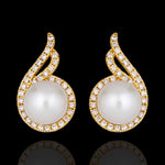 White Pearl with Diamond CZ Earrings Tops In 18Kt Gold Polish