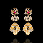 18Kt Polish Diamond Look Ruby Pearl Jhumka Earrings Design