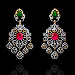 Diamond Ruby Emerald Look Chandelier Bridal Earrings