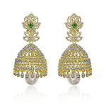 Crafted with utmost precision and artistry, these jhumka earrings showcase a captivating design that beautifully accentuates the natural beauty of CZ diamonds.