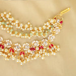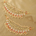 Regal Pearl & Polki Kundan Bridal Ear Chains with Ruby Accents