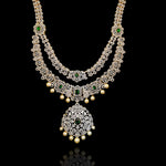 2 Line Heavy Bridal Pearl Hanging Necklace with Diamond Look