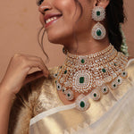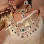 Detachable Bridal Choker Necklace with Emerald Look Stones in Silver