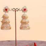 Detachable CZ Diamond Ruby Look Multi-Layer Bridal Jhumka Earrings in Gold Polish