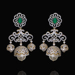 Detachable Diamond Look Bridal Choker + Earrings with Pearls in Gold Polish