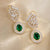 Emerald Diamond Drop Earrings in 925 Silver Gold Polish