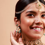 Emerald Green Polki Look Drop Earrings with Pearls in Gold Polish Design