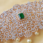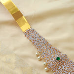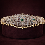 Exquisite Diamond Look Emerald Bridal Vaddanam with Pearl Drops