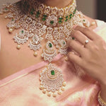 A sparkling explosion of CZ diamonds, this peacock design of Bridal Vadanam will shine with you on your special day.