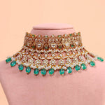 Polki Look Polki Look Bridal Choker with CZ Diamonds and Green Beads in Gold Polish